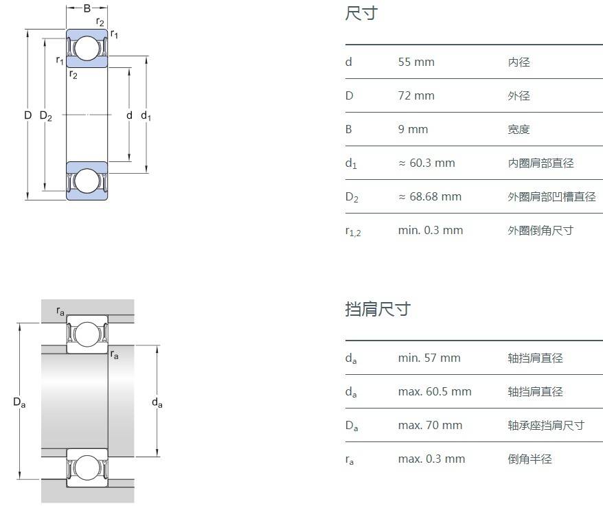 不銹鋼軸承S61811-2Z 不銹鋼深溝球軸承廠家SS6811ZZ 尺寸規(guī)格表查詢W6811-2RS