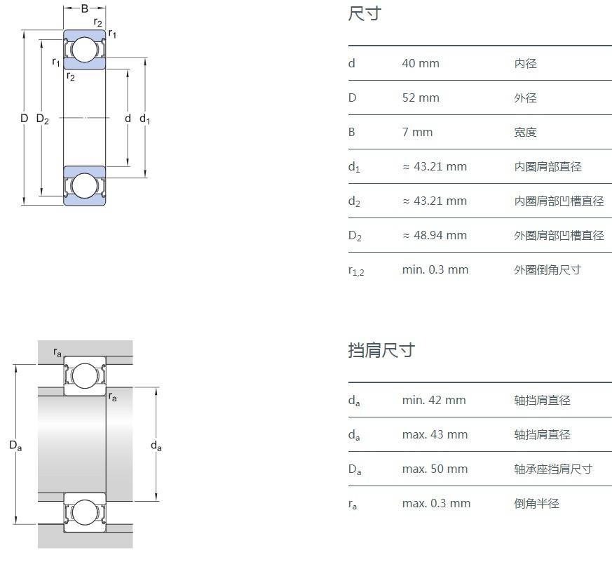 SIAIF不銹鋼深溝球軸承 S61808-2Z 詳細參數(shù)