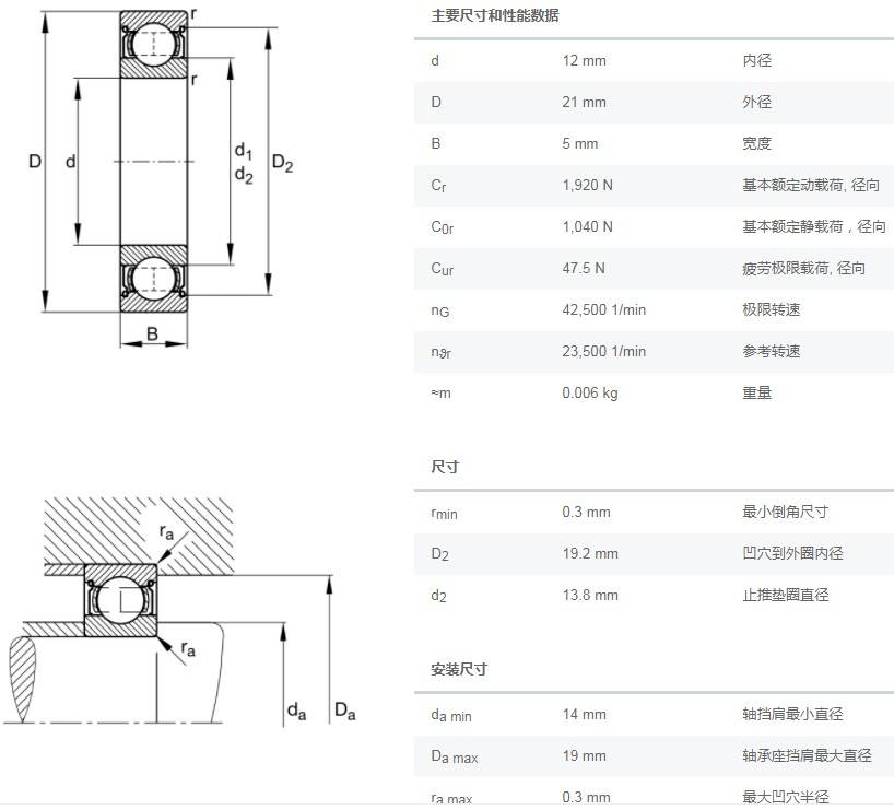 SIAIF不銹鋼深溝球軸承 S61801-2Z 詳細參數
