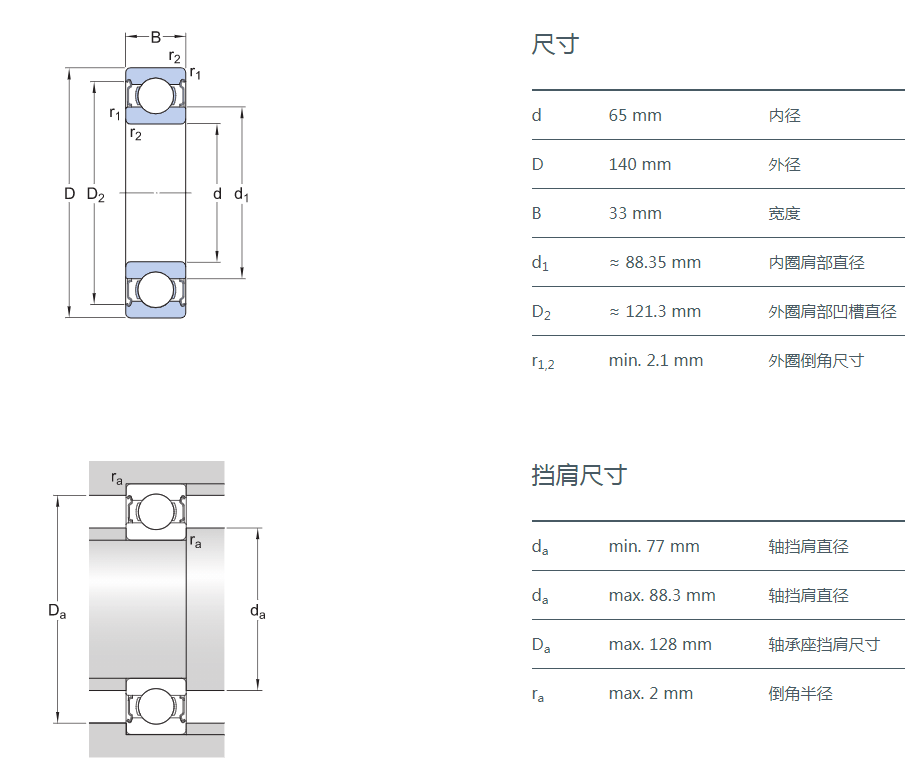 SIAIF不銹鋼深溝球軸承 S6313-2Z 詳細參數