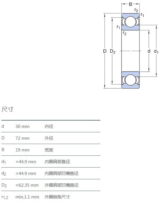 SIAIF不銹鋼深溝球軸承 S6306-2Z 詳細(xì)參數(shù)