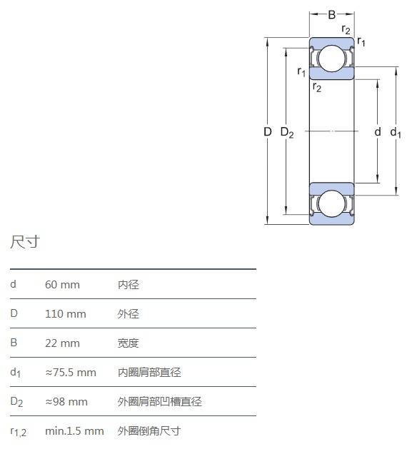 SIAIF不銹鋼深溝球軸承 S6212-2Z 詳細參數