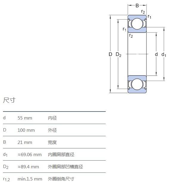 SIAIF不銹鋼深溝球軸承 S6211-2Z 詳細參數