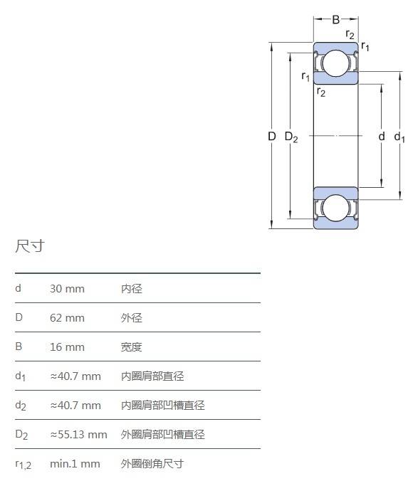 SIAIF不銹鋼深溝球軸承 S6206-2Z 詳細參數