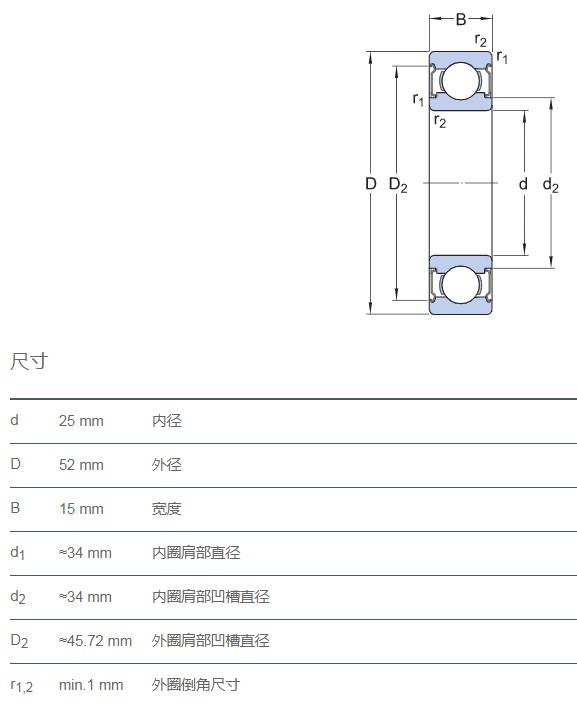 SIAIF不銹鋼深溝球軸承 S6205-2Z 詳細(xì)參數(shù)