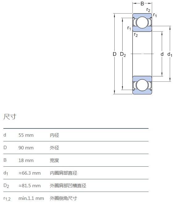 SIAIF不銹鋼深溝球軸承 S6011-2Z 詳細(xì)參數(shù)