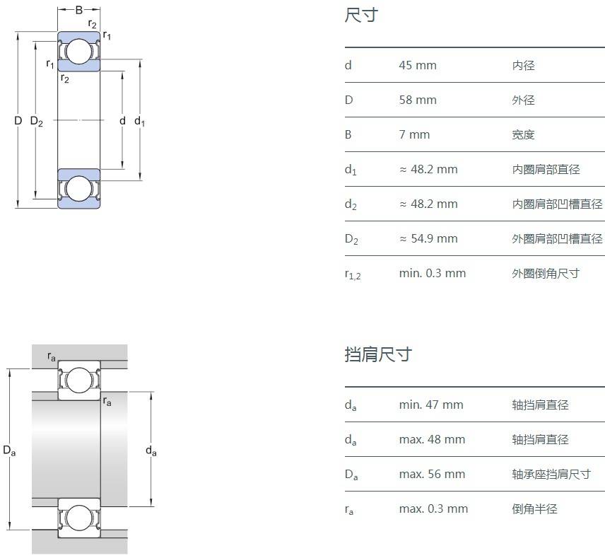 SIAIF不銹鋼深溝球軸承 S61809-2Z 詳細參數