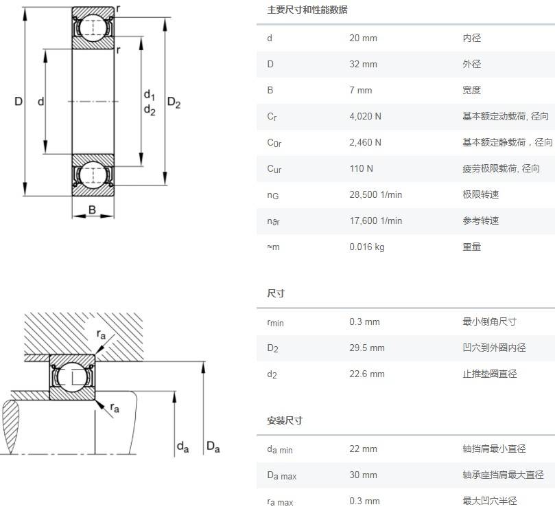 SIAIF不銹鋼深溝球軸承 S61804-2Z 詳細參數