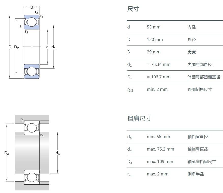 SIAIF不銹鋼深溝球軸承 S6311-2Z 詳細參數