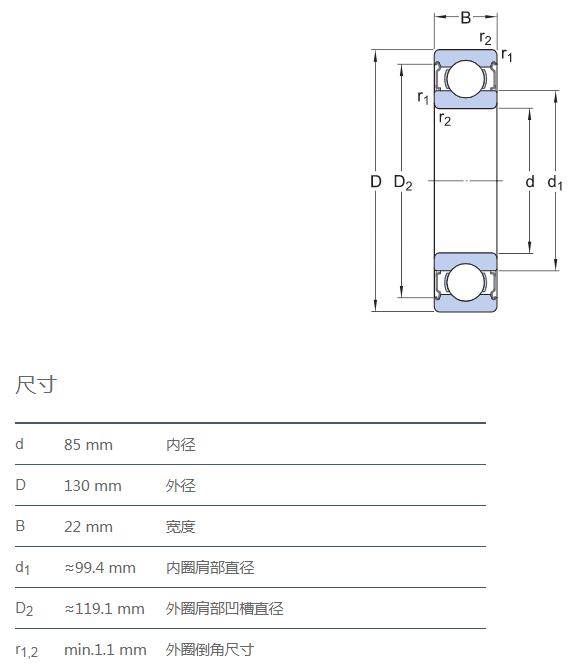 SIAIF不銹鋼深溝球軸承 S6017-2Z 詳細參數