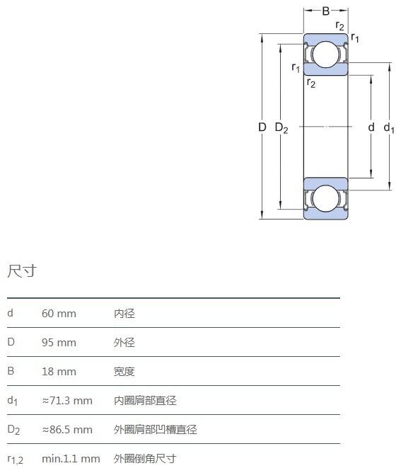 SIAIF不銹鋼深溝球軸承 S6012-2Z 詳細參數