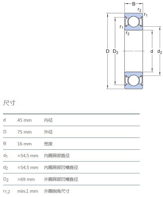 SIAIF不銹鋼深溝球軸承 S6009-2Z 詳細參數